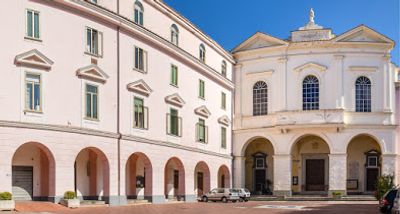 La Basilique Sanctuaire Maria Santissima di Materdomini présente une architecture néoclassique avec de grandes colonnes et des éléments de conception symétriques.