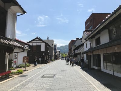 La rue principale de Tsuwano présente des bâtiments traditionnels aux murs blancs, aux tuiles sombres et des canaux remplis de carpes koï.