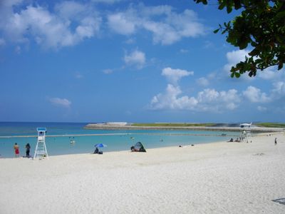 Tropical Beach est une plage urbaine dans le Parc de Ginowan avec des eaux peu profondies pres du Centre de Conferences d'Okinawa. Le site comporte differentes zones pour la baignade, les loisirs et les evenements en plein air.