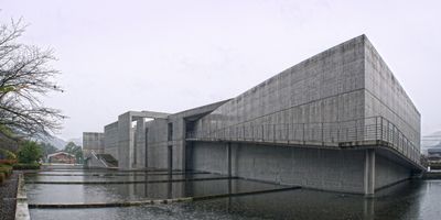 Le Musée Nariwa présente des espaces d'exposition conçus par l'architecte Tadao Ando, intégrant des structures en béton qui s'harmonisent avec l'environnement naturel.