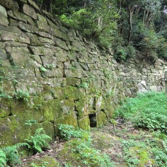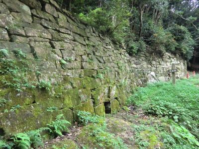 Les murailles en pierre d'Iwakisan Kōgoishi s'élèvent sur le Mont Iwaki, présentant plusieurs portes défensives et des structures anciennes de gestion des eaux.