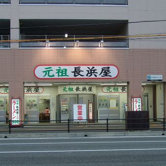 Ganso Nagahamaya est un restaurant de ramen à Fukuoka qui sert du tonkotsu ramen avec des nouilles ultra-fines dans un bouillon léger à base d'os de porc. Le bol est garni d'oignons verts et de tranches de porc rôti.