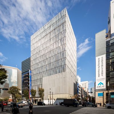 Le bâtiment intègre des éléments architecturaux japonais tout en répondant aux besoins des entreprises du quartier commercial de Ginza.