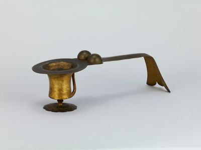 Ce brûle-encens est une œuvre en laiton avec une poignée en forme de queue de pie, mesurant 39 centimètres de long et 10,2 centimètres de haut. L'objet combine une chambre de combustion fonctionnelle avec une forme de poignée ornementale et est exposé dans la collection permanente du Musée national de Tokyo.