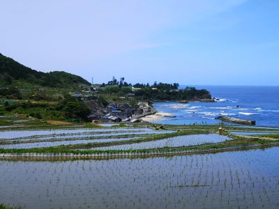 Les Terrasses de Riz de Sodeshi comprennent 400 rizières individuelles disposées sur les pentes entre les montagnes et la Mer du Japon.