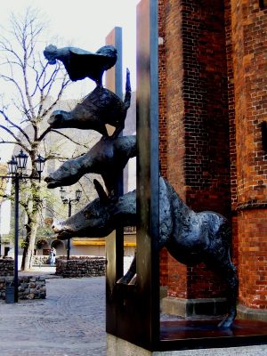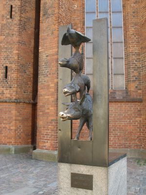 Die Bremer Stadtmusikanten, Sculpture en bronze près de l'église Saint-Pierre, Lettonie