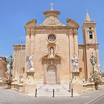 L'église paroissiale de l'Annonciation s'étend sur 37 mètres et présente des murs en calcaire avec des éléments architecturaux maltais et un dôme baroque.