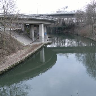 La structure comprend deux voies direction est-ouest et trois voies ouest-est, avec des pistes cyclables dédiées sur le côté sud.