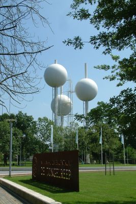 Les tours d'eau d'Eindhoven se composent de trois réservoirs sphériques montés sur des colonnes de soutien indépendantes qui s'élèvent à environ 43 mètres de haut. Chaque réservoir mesure environ 10 mètres de diamètre et approvisionne la ville en eau.