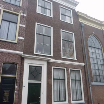 Pand met lijstgevel met speklagen. Onderbouw modern