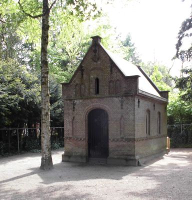 Verdiepingloos pand onder zadeldak; daterend uit de bouwtijd van de kerk, en in een verband daarmee aangelegd