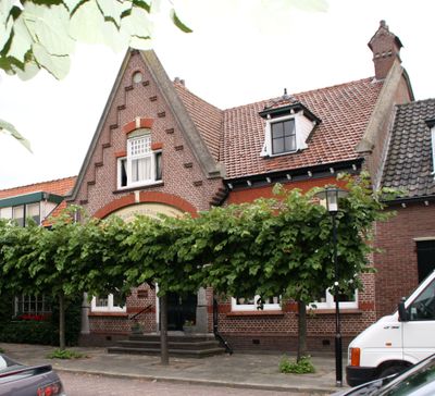 Bakstenen woonhuis, gepleisterd aan de plint en rond de voordeur. Aangebouwde schuur met pannen zadeldak en houten topgevellijst. Zomerhuis
