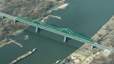 La conception du pont intègre une double fonctionnalité, accueillant à la fois des voies ferrées et la circulation routière sur ses 430 mètres.