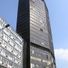Le gratte-ciel Beograđanka atteint 101 mètres avec 24 étages, présentant une façade en aluminium foncé et verre de forme trapézoïdale dans le centre de Belgrade.