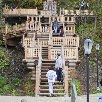 Le nom Gremyachy vient du mot russe signifiant tonnerre et reflète le bruit de l'eau qui tombe. Les visiteurs viennent ici pour boire l'eau de source fraîche considérée comme particulièrement pure.