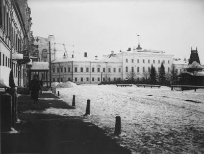 Le lycée de Nijni Novgorod se dresse près du Kremlin, présentant des éléments architecturaux typiques des établissements éducatifs russes du XIXe siècle.