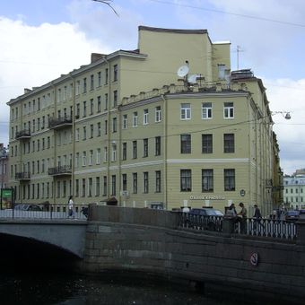 Le bâtiment se situe au 104 quai du canal Griboïedov et porte une plaque commémorative indiquant son statut de patrimoine culturel protégé. Sa position le long de l'un des principaux canaux de la ville le rend facile à trouver lors de la visite du quartier.