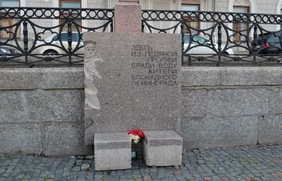 Le monument rend hommage aux habitants de Leningrad qui venaient chercher de l'eau à ce trou glacé lors du blocus. L'inscription célèbre leur résilience face aux conditions de vie impossibles.