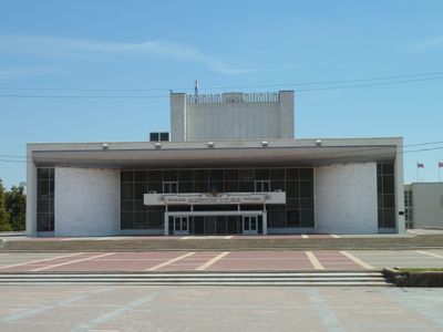 Le Théâtre Académique d'État I. S. Tourgueniev occupe un bâtiment sur la rue Lénine, présentant des éléments architecturaux classiques du design russe du XIXe siècle.