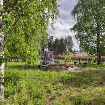 Братская могила сельских активистов Евсеева В.И. и Маркова В.В., погибших от рук белогвардейцев 1918-1919 гг, и Тихоновой М.В. воина-минёра, погибшей в 1944 году (Ругозеро)