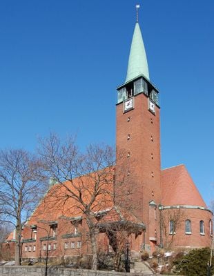 L'église de Hjorthagen est un bâtiment religieux de style Art Nouveau dans le quartier de Hjorthagen à Stockholm, construit en béton armé, granit et brique. La structure présente les lignes épurées et le design fonctionnel caractéristiques de l'architecture suédoise du début du 20e siècle.