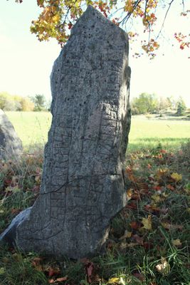 Découverte en 1899 et réparée en 1903, cette pierre de l'Âge Viking contient des inscriptions en alphabet Younger Futhark documentant des messages mémoriaux.