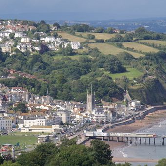 Teignmouth s'étend le long de la rive nord de l'estuaire de la rivière Teign, avec une plage de sable de 3 kilomètres face à la Manche.