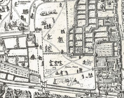 Suite au Grand Incendie de Londres en 1666, Moorfields est devenu un lieu d'installation temporaire pour des milliers de résidents déplacés.