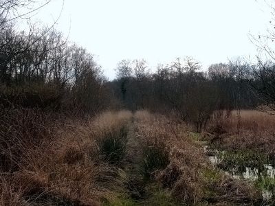 Le chemin Sweet traverse 1.6 kilomètres de terrain marécageux avec des planches de chêne soutenues par des pieux croisés enfoncés dans le sol détrempé.