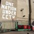 One Nation Under CCTV était une fresque de graffiti à Westminster montrant un enfant à capuche rouge peignant du texte tandis qu'un policier et un chien observaient, le tout à côté de caméras de surveillance. La composition entière formait une déclaration directe contre l'observation constante dans les espaces urbains de la ville.