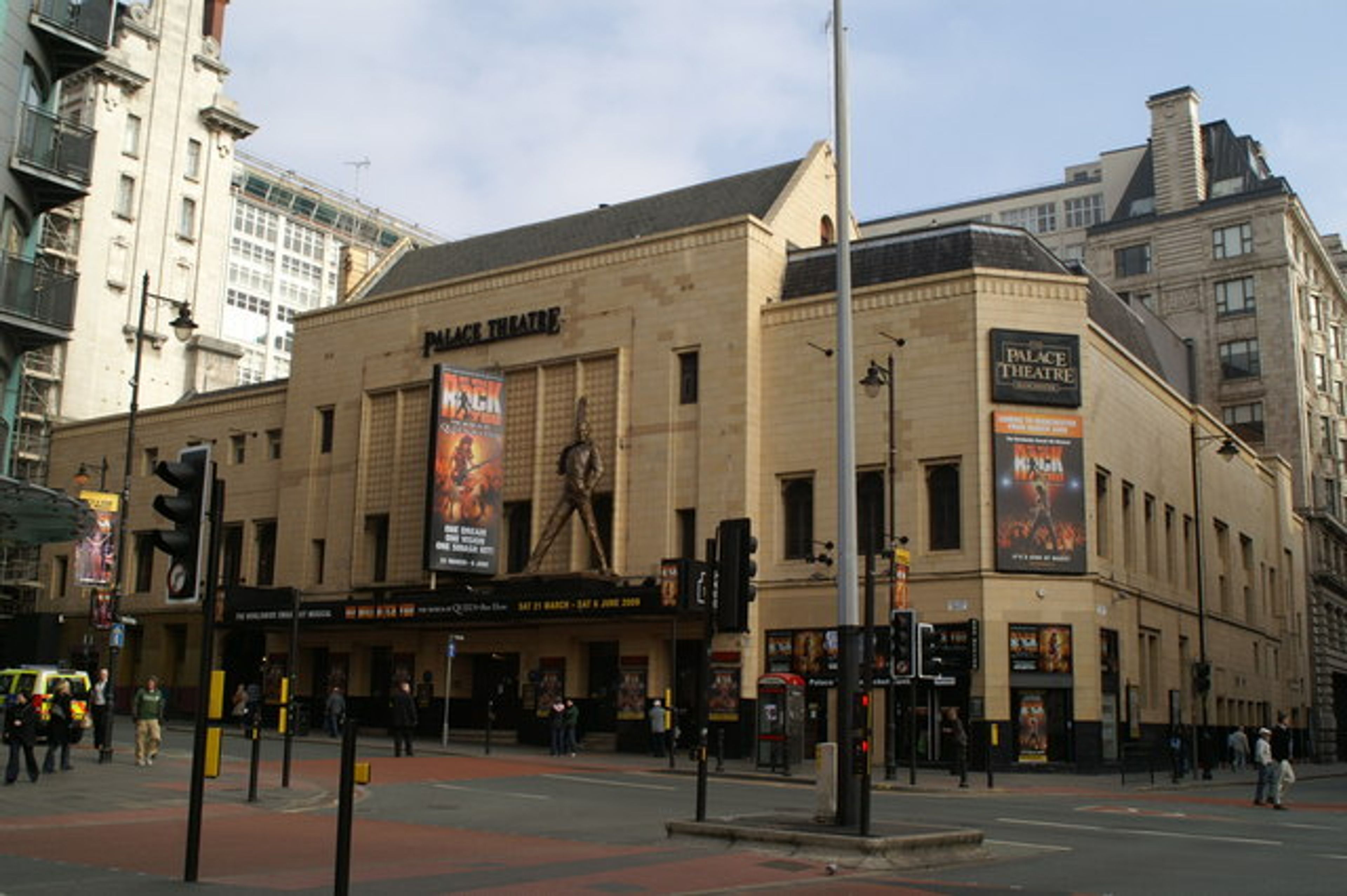 Le Palace Theatre se dresse à l'intersection d'Oxford Street et Whitworth Street, offrant une capacité de 1.955 places réparties sur plusieurs niveaux.