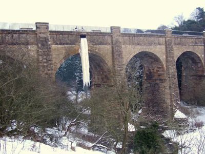 L'Aqueduc Almond s'étend sur 130 mètres de longueur et s'élève à 23 mètres de hauteur, transportant le Canal Union au-dessus de la rivière Almond.