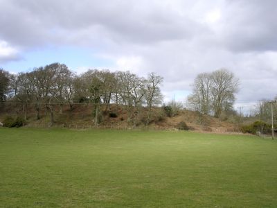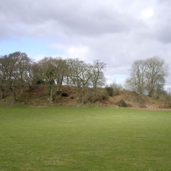 L'enceinte fortifiée s'étend sur 2.8 hectares et comprend trois remparts avec doubles fossés, s'élevant à 27 mètres au-dessus du niveau de la mer près de la route A337.