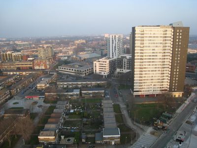 Carpenters Estate est un ensemble résidentiel situé près de la gare de Stratford comprenant plusieurs tours et des bâtiments plus bas. L'organisation spatiale combine différents types d'habitations sur un terrain étendu.