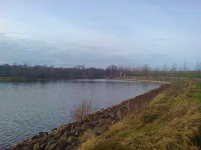 Le site etait autrefois des terres agricoles qui ont ete transformees en espace de loisirs public. Le reservoir actuel a ete cree comme element central du parc et determine son utilisation aujourd'hui.