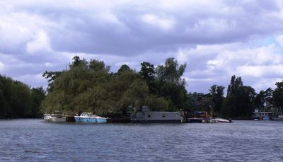Garrick's Eyot comprend 20 maisons réparties sur une petite île de la Tamise, positionnée à 330 mètres en amont de l'île de Tagg.