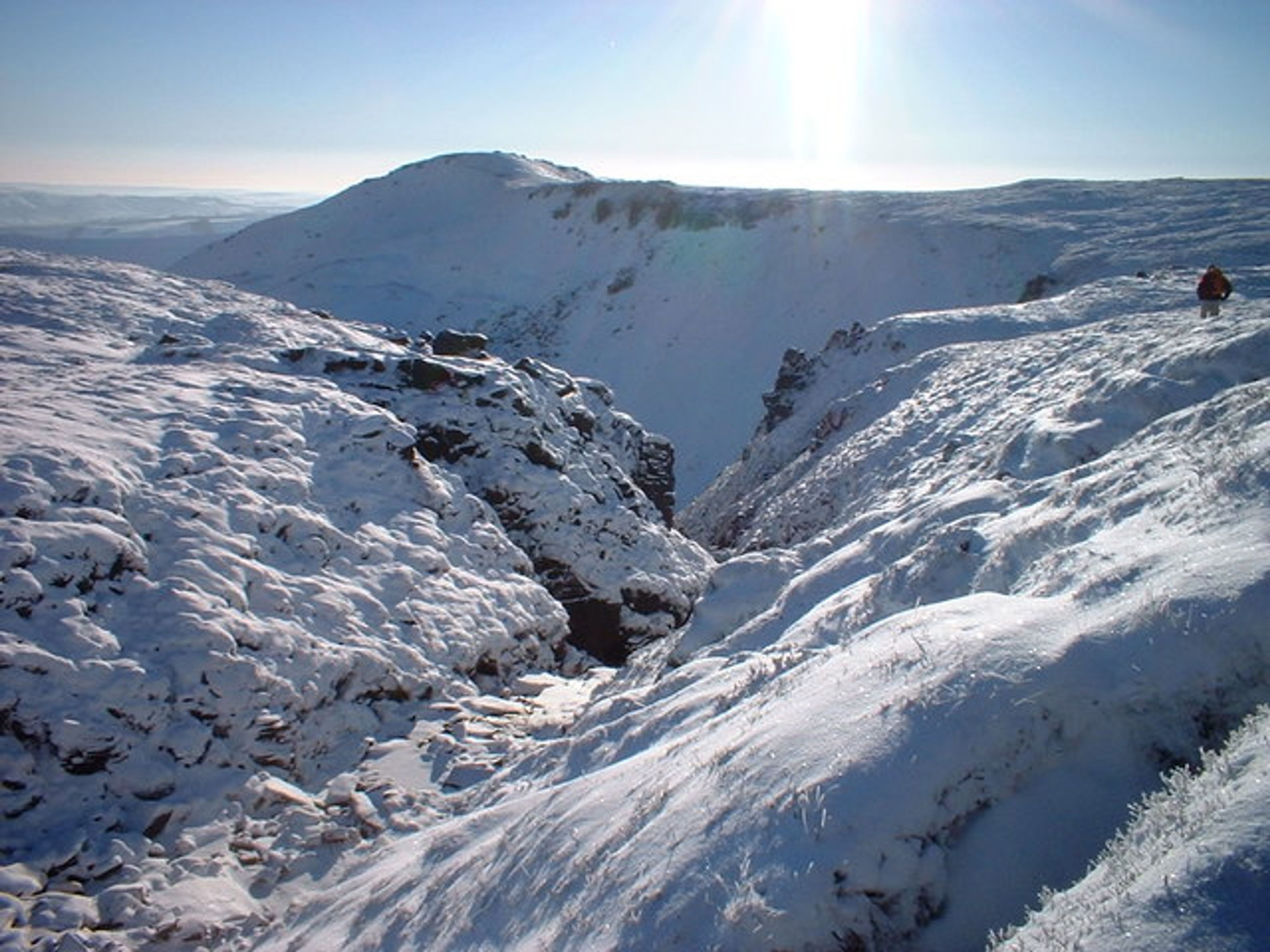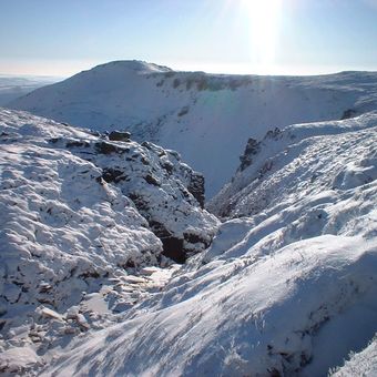 Le pic reste indépendant de Kinder Scout malgré leur connexion par un col élevé, créant une formation géographique distincte dans la zone de Dark Peak.