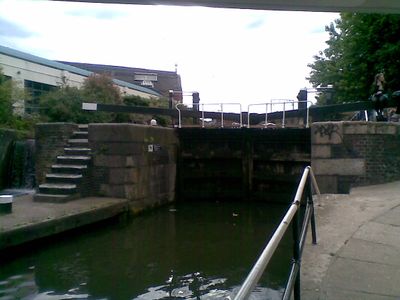 L'écluse de Kentish Town comprend des chambres en briques avec des portes aux deux extrémités pour gérer les niveaux d'eau du Canal Regent.
