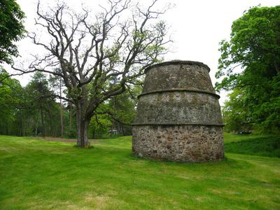 Un colombier en forme de ruche du 16e siècle sur le terrain contient 500 niches d'anidage pour les pigeons messagers et affiche toujours trois larmiers de sa construction originale. Cette structure spécialisée montre l'importance capitale des pigeons pour la communication et l'approvisionnement alimentaire à cette époque.