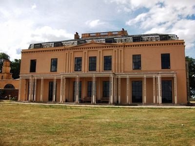 Moggerhanger House est un manoir georgien situe dans environ 33 acres de parc et de foret dans le nord-ouest de l'Angleterre. Le batiment affiche une architecture symetrique avec des colonnes en pierre de Portland et des decorations interieures elaborees.