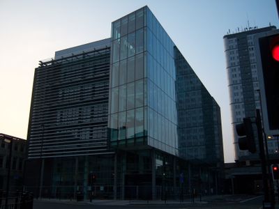 La Newcastle City Library est un bâtiment moderne de six étages situé à l'intersection de John Dobson Street et New Bridge Street West. De grandes baies vitrées inondent l'intérieur de lumière et offrent des vues sur la ville, créant des espaces lumineux pour la lecture et l'étude.
