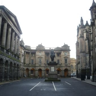 Parliament House présente une façade néoclassique conçue par Robert Reid au début du XIXe siècle, avec des colonnes classiques et une maçonnerie traditionnelle écossaise qui domine Parliament Square.