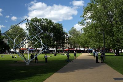 Huit acres d'espace vert forment une zone triangulaire avec pelouse et arbres, créant un point central de rassemblement dans l'ouest de Londres.