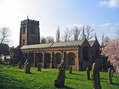 L'église Saint-Chad présente une architecture gothique anglaise avec des murs en grès rouge et une fonte baptismale octogonale datant de 1641.