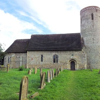 L'église se dresse dans des champs ouverts au sud du village de Hales, accessible par un chemin herbeux irrégulier depuis le parking.