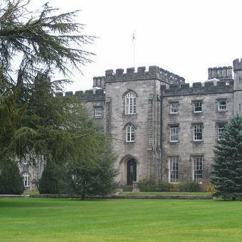 Tulliallan Castle est un manoir combinant des éléments architecturaux gothiques et italiens, situé au nord du pont de Kincardine au-dessus du Firth of Forth avec de vastes terrains paysagers. Le bâtiment présente des styles architecturaux mixtes reflétant différentes périodes de développement et de construction.