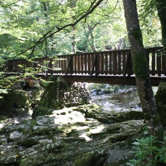 Le Tollymore Forest Park est une zone forestière d'environ 630 hectares au pied des Mourne Mountains en Irlande du Nord avec un réseau de sentiers pédestres traversant des forêts denses, des pentes montagneuses et la rivière Shimna. Des ponts en pierre franchissent le terrain, reliant différentes sections et permettant l'accès à des zones reculées.