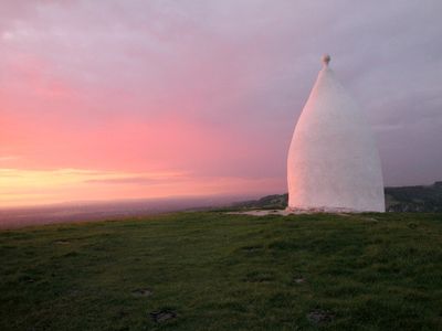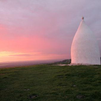 White Nancy est une structure cylindrique en pierre avec un toit conique qui s'élève au sommet d'une colline près de Rainow. Sa forme géométrique simple et sa position en avant-plan en font un repère frappant du terrain environnant.
