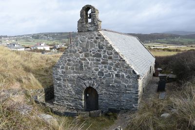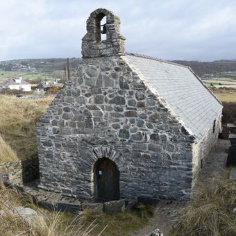 La structure rectangulaire en pierre de l'église Saint-Tanwg s'élève près de la côte, mesurant 17 mètres de long sur 7 mètres de large.