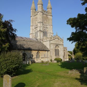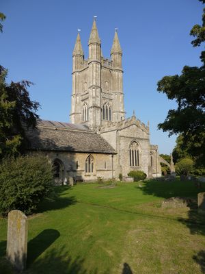 L'église en pierre présente une tour centrale, de grandes nefs et des éléments architecturaux traditionnels caractéristiques des édifices religieux du Wiltshire.